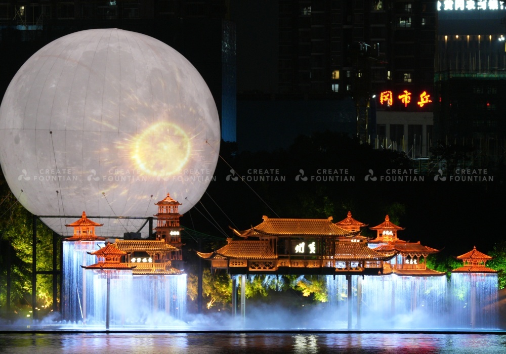 น้ำพุดนตรีลอยน้ำสีสันสดใส